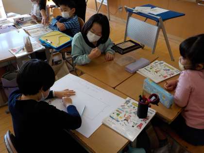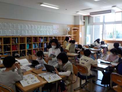 生活科の学習として、グループで生き物を飼うことになりました。グループごとに、仲良くなりたい生き物を選び、その生き物の餌やすみかについて調べています。ビオトープには、いろいろな生き物がいて、休み時間になると、子供たちは生き物を探しています。最後には自然に返しますが、それまで仲良くなれるように生き物のお世話を頑張りたいと思う子供たちです。
