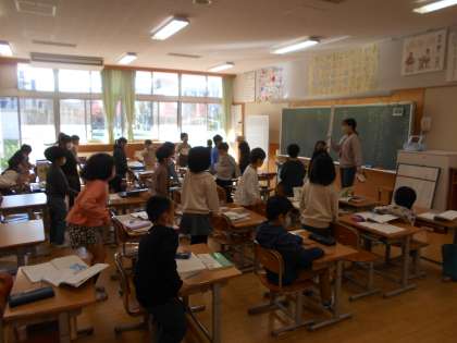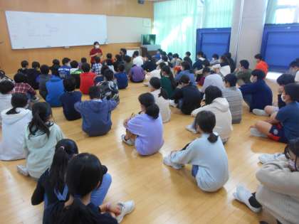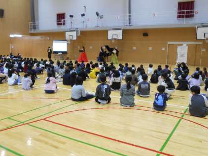 昨日は、学校音楽会が行われました(左)。校歌は勿論、愛唱歌(お子さんに聞いてみてください。本校にはあります)、さんさい踊りを入れてくださいました。さんさい踊りは、運動会で踊ったことでノリノリでした。