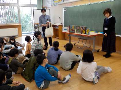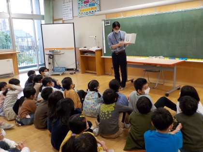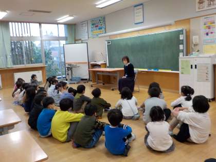 以前、2年生全員で行った市立図書館の方が、今日は中央小学校に来てくださいました。絵や文字がなく、声だけを聞いて想像する読み聞かせや、テーマに沿った絵本の読み聞かせをして頂きました。子供たちは、その世界に浸って楽しんでいました。
