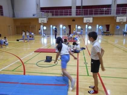 3年生がマット運動に挑戦していました(右)。ふとんやベッドで練習しそうですね。
