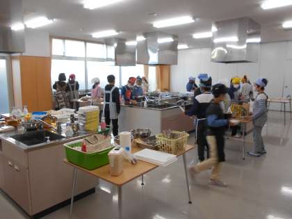 さて、昨日から5年生の家庭科の調理実習が始まり、育てた米を食べました(左、中)。当たり前だと思っていたことを見直す良い機会です。