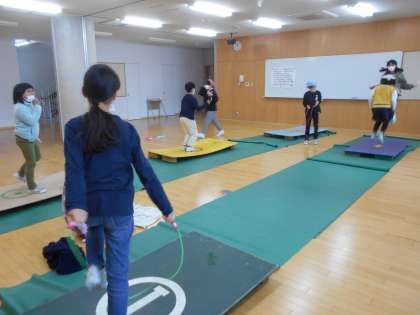 さて、学習参観で気付かれた方もいると思いますが、3階会議室をジャンピングボードを置き縄跳び道場として開放しました(左)。どうしても天気が悪い日が続く北陸で、少しでも運動量を確保したいと始まりました。
