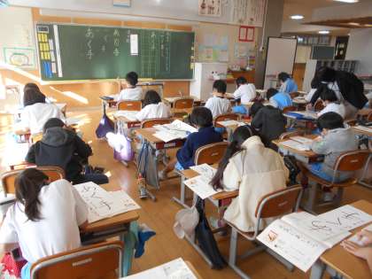 5年生の道徳(中)、2年生の書写(右)です。そろそろ書き初めの練習が始まりました。