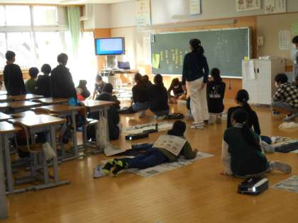 6年生は書き初めの練習です(中)。これが小学校での最後の大会になります。さあ、誰が入賞するか?
