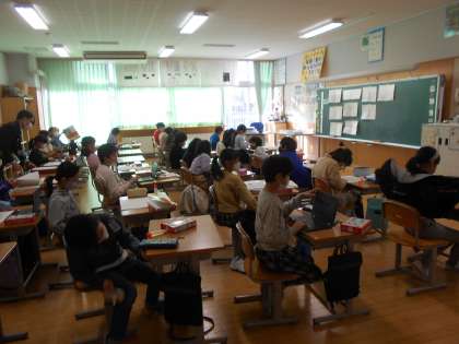 3年生が国語で故事成語を学習しています(左)。でも授業はきっかけだけで、日頃から使い慣れていないと難しいです。3年生以上はどんどん使ってみてください。