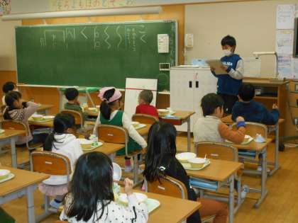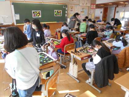 中の写真は、2年生の図工です。仕上がりを楽しんでいました。