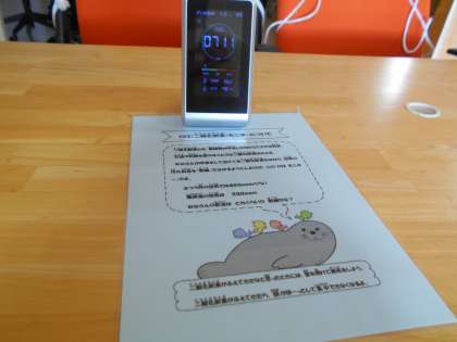 過日、学校薬剤師による学校環境衛生検査を実施しました。その際、空気の検査とCO2モニターでの数値の比較を行いました。二酸化炭素濃度は、1000ppm以下で良好な状態です。感染症拡大防止のために、2段階換気を行い、効果的に感染予防に努めています。