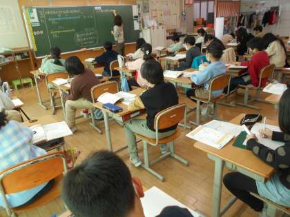 写真は、2年生の道徳(中)、3年生の算数(右)です。テストの合間をぬって、授業も大切です。
