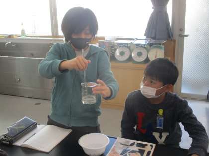 子供たちは実験を通して、決まった量の水にとける物の量には限りがあるということや、とけ残った物をとかす方法、水にとけた物を取り出す方法を学ぶことができました。