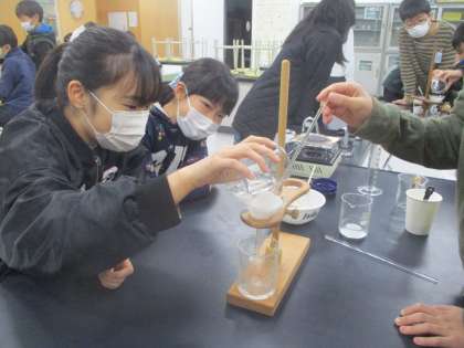 理科「物のとけ方」の学習では、食塩やミョウバンがどの量まで水にとけるのかを調べる実験や、水の量を増やしたり、水の温度を上げたりして、とける量のちがいを調べる実験、水よう液を冷やしたり蒸発させたりして、食塩やミョウバンを取り出す実験をしました。
