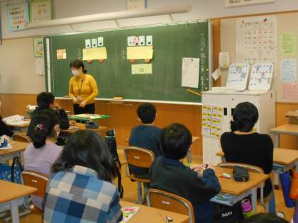 4年生が書き初めの練習(中)、6年生が音楽に挑戦(右)していました。