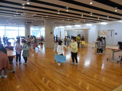 HPでも紹介しているように2年生が生活科で交流会(左)を行っていました。1年生は国語でお店屋さんごっこです(中)。「○○」というカード払いもあったりして今時です。どちらも楽しそうです。