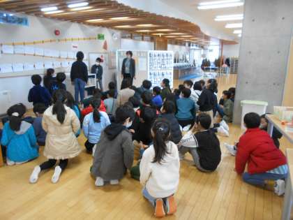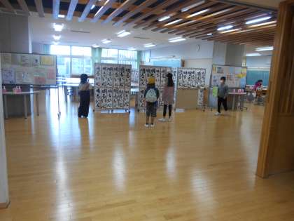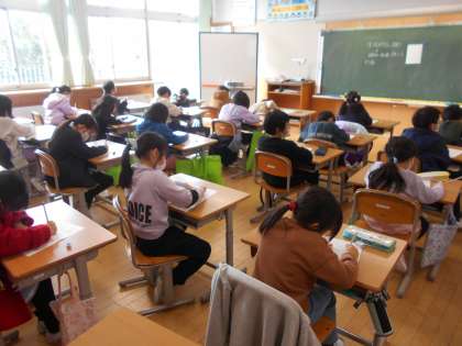 昨日の書き初め大会の結果が出ていて、ワイワイやっている学校です(左)。