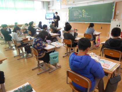 写真は、2年生の道徳(中=一枚の写真)と5年生の社会科です(右)。授業も大切です。