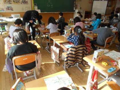 写真は、中が3年生の理科で電気の働きについて学んでいるのかな?、右は4年生の国語の反対言葉です。どちらも今後につながる大切な学習です。