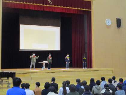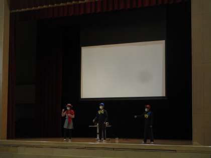 卒業を祝う週間の最終日に、5年生が中心になって、練習や準備を重ねてきた「卒業を祝う集会」が行われました。5年生はステージ上で進行し、6年生のみなさんに楽しんでもらえるようにたくさんの工夫を凝らしました。また、1〜4年生までの各学年が6年生との最高の思い出をつくるために様々な企画を考え、発表してくれました。卒業が近づいている6年生を含め、全校で楽しい時間を過ごすことができました。
