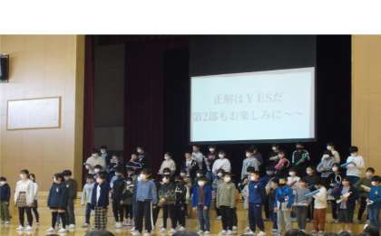 金曜日には5年生を中心に「卒業を祝う会」を行いました(左)。久しぶりに対面で出し物を行い、6年生もお返しを行っていました。
