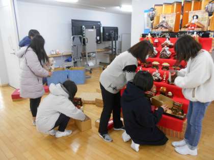 その6年生の女児希望者が、玄関の雛人形を片付けてくれました(中)。