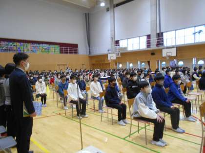 1〜4年生も入れて「予行」を行いました。卒業生の晴れ姿を見せたいからです。微調整して本番に備えたいです。