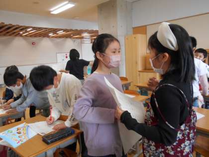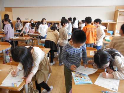今日から、外国語の学習が始まりました。いろいろな国の言葉であいさつをし、友達に好きな物を尋ねました。それぞれのあいさつの仕方の違いに驚いていたようです。