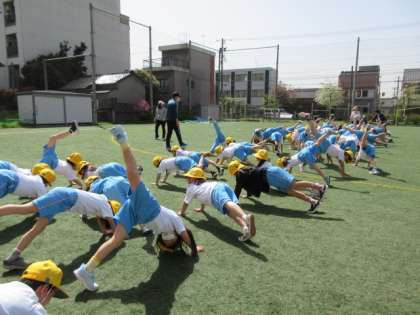 今日は、初めての体育の授業がありました。準備運動をした後に、50メートルを力いっぱい走りました。広いグラウンドで運動すると気持ちがいいですね。