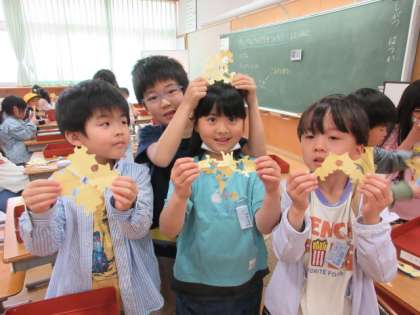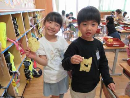はさみの使い方を練習するために、切り紙をしました。