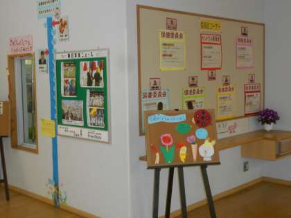 明日が令和5年度初の学習参観の21日(金)です。朝から委員会活動を頑張る5、6年生がいました(左=児童玄関掲示)。