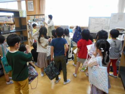 1年生の図書館デビューです(中)。これから図書室を利用できます。