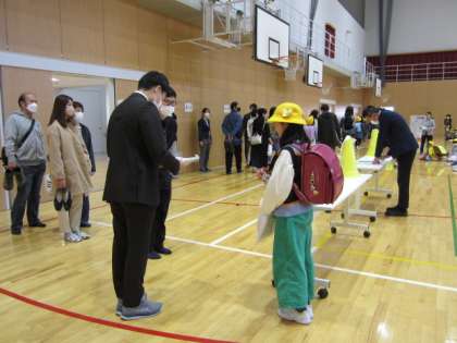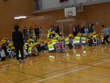 最後に、1・4年生は引き渡し訓練がありました。荷物を持って体育館に集合し、保護者の方へ無事に引き渡す訓練です。毎年、1年生と4年生が行っていく予定です。