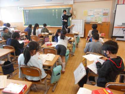 3年生の国語、国語辞典の使い方について学んでいます(右)。インターネットで「語彙」を調べることが多い時代だからこそ、「辞典で調べる」よさも学びます。