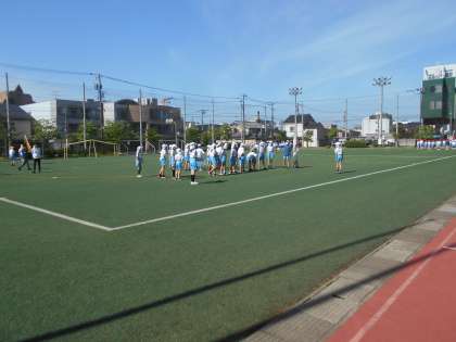 5,6年生が応援練習をグラウンドで行っていました(左)。