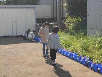 生き物を育てることにも意義があります。天気にも左右されます。遊びに夢中になっていると水やりを忘れます。生き物がその子の生活態度にも比例します。上手くいかないことも学びです。運動会で忙しいですが、生き物の学習にも心を寄せて欲しいです。