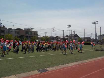 お昼休みに、応援練習を行いました。6年生の応援リーダーを中心に、それぞれの団で応援パフォーマンスの言葉や動きを練習しました。