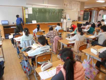 2年生では校区の様子を(中)、4年生は漢字を(右)やっていました。運動会の練習ばかりはやってられません。