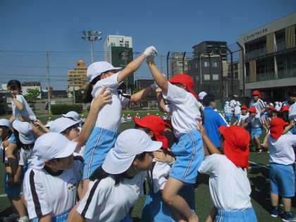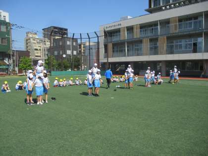 6年生は運動会の団体戦で、5年生と合同で騎馬戦を行います。騎馬戦の練習では同じ騎馬を組む友達に声をかけ合いながら、どの団も白熱した戦いを繰り広げていました。