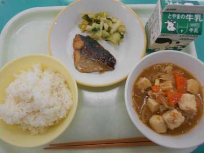 本日の献立は、鰺のみりん焼き、チンゲンサイソテー、厚揚げの中華煮込み、です。