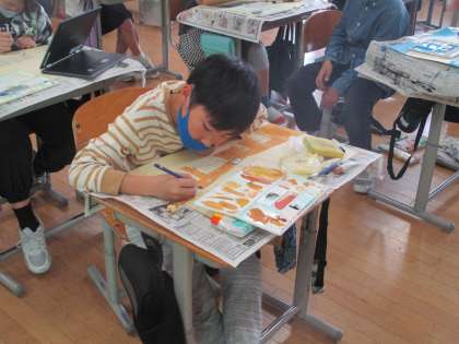 図画工作科「わたしの大切な風景」の学習では、6年間過ごした中央小学校で自分が一番大切な場所・風景を写生しています。小学校生活を振り返り、自分の思い出に残っている場所や風景をクロムブックで撮影し、丁寧に絵に表していました。