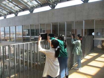 図画工作科「わたしの大切な風景」の学習では、6年間過ごした中央小学校で自分が一番大切な場所・風景を写生しています。小学校生活を振り返り、自分の思い出に残っている場所や風景をクロムブックで撮影し、丁寧に絵に表していました。