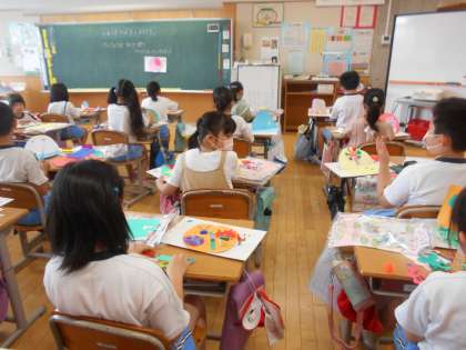 図工では、3年生が回る作品づくり(中)を行っていました。