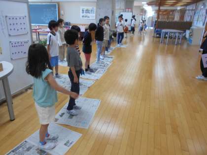 なかよしタイムには、初めての「縦割り遊び」を行っていました。色々工夫を凝らしていました(右)。