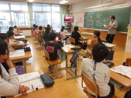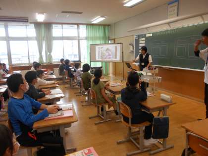 6年生が家庭科(中)、5年生が外国語(右)を学習していました。どちらも、今月に宿泊を予定しています。