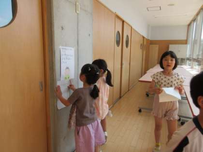 休み時間には、割り当ての場所で安全に気をつけて過ごしてます。今日は、保健委員会が企画したクイズラリーに参加する子がいました。2階の廊下に掲示してあるクイズをよく読んで、答えを考えていました。