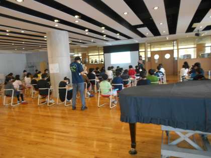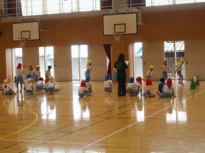 2年生は、運動会からスポーツテスト(反復横跳び)に挑んでいました(左)。6年生が、宿泊学習のオリエンテーションをやっていました(中)。