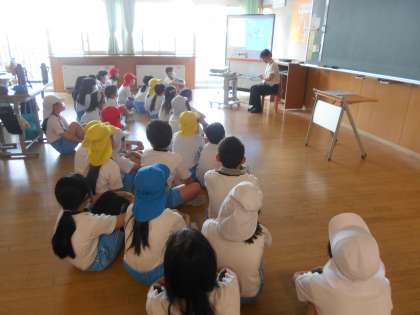 「ひだまりの会」の読み聞かせは、4年生でした(右)。