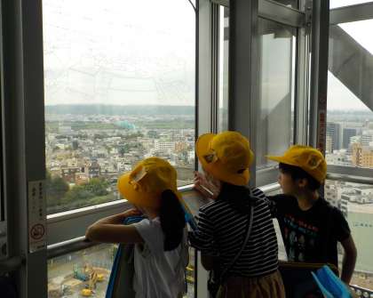 今日は市内電車に乗って、市役所展望台に行きました。実際に富山市街の様子を見たり、電車に乗ったりすることで、様々な発見をしている子供たちでした。