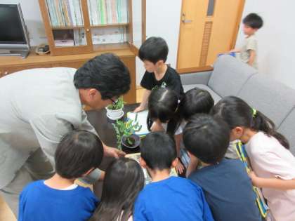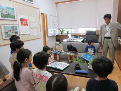 校長室では、特別にソファに座らせてもらいました。また、校長室の棚にあるアルバムも見せてもらいました。