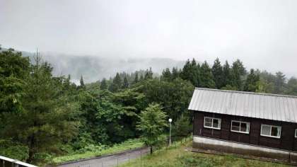 雨がひどくなり、服も濡れてしまったので、予定を変更して、先に入浴しました。