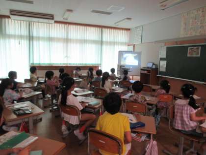 国語の学習では、くちばしについての説明文の学習をしています。いろいろな鳥のくちばしについての動画を見ました。きつつきが木に穴を開ける様子やおうむがえさを食べる様子に興味津々の子供たちでした。