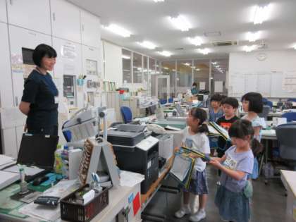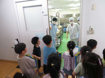 普段入ることがない職員室に入ったり、給食を作っているところを窓から見たりすることができて嬉しそうな子供達でした。