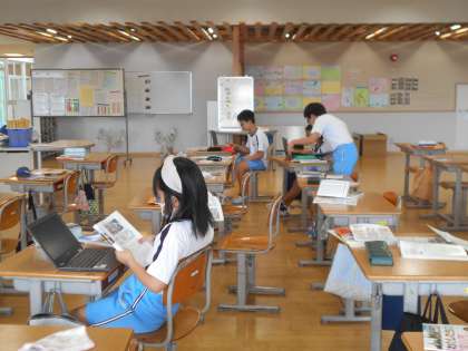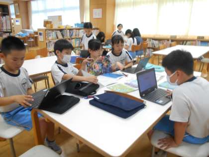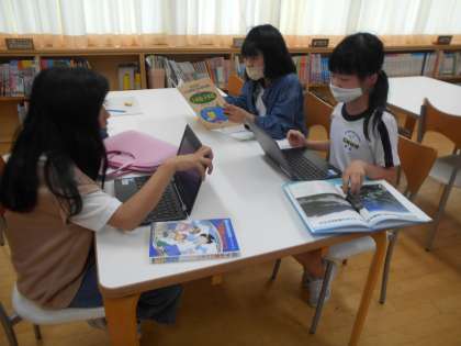 社会科では、「富山の水」について学習しています。それぞれが気になることについて、本や教科書、資料を使って調べ、ノートやクロームブックでまとめています。